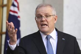 Prime Minister Scott Morrison says he hopes Australia can take more than 3000 Afghans.CREDIT:ALEX ELLINGHAUSEN