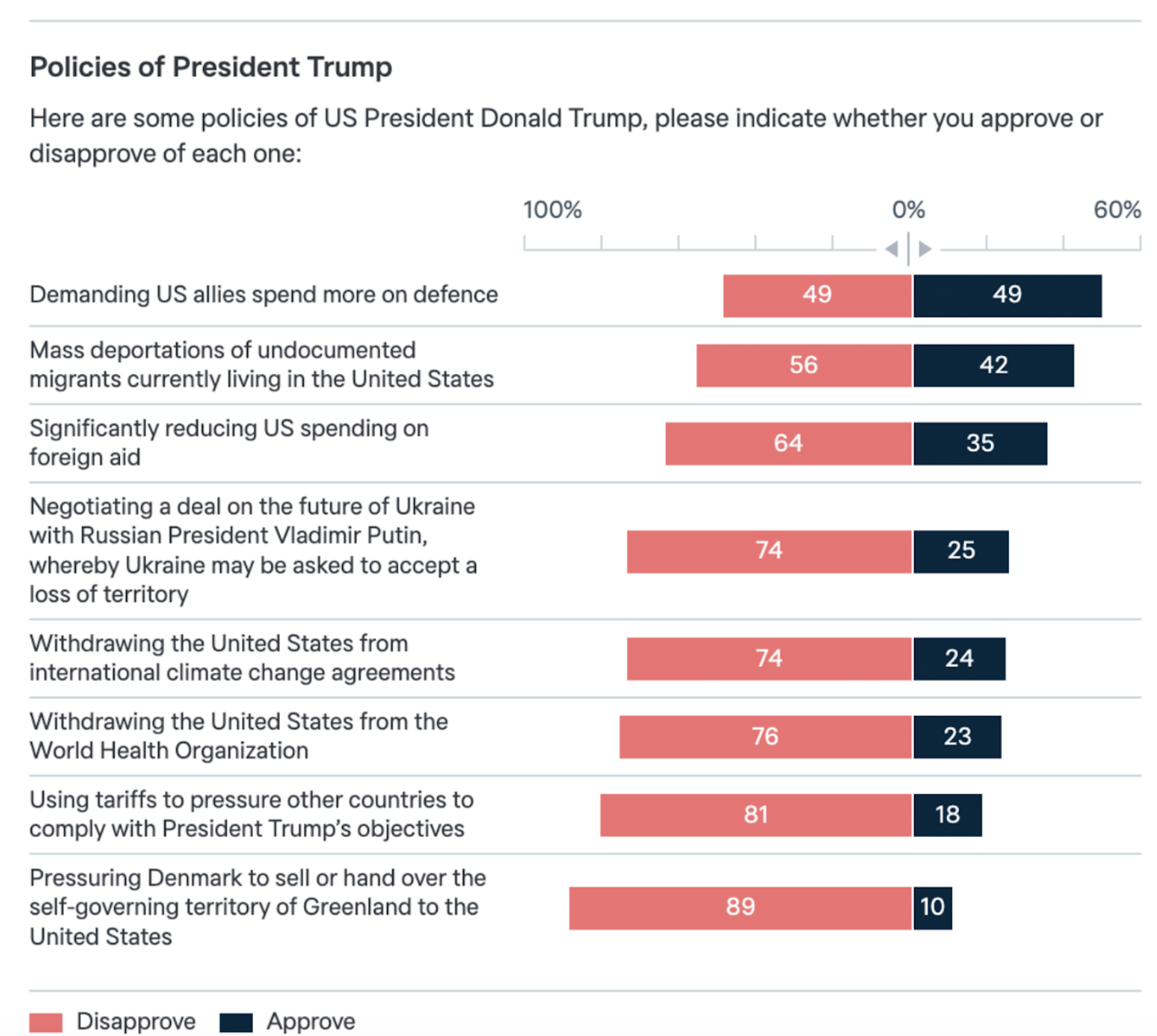 On Trump’s demand that US allies spend more on defence people were, however, evenly divided (49% approved/disapproved).