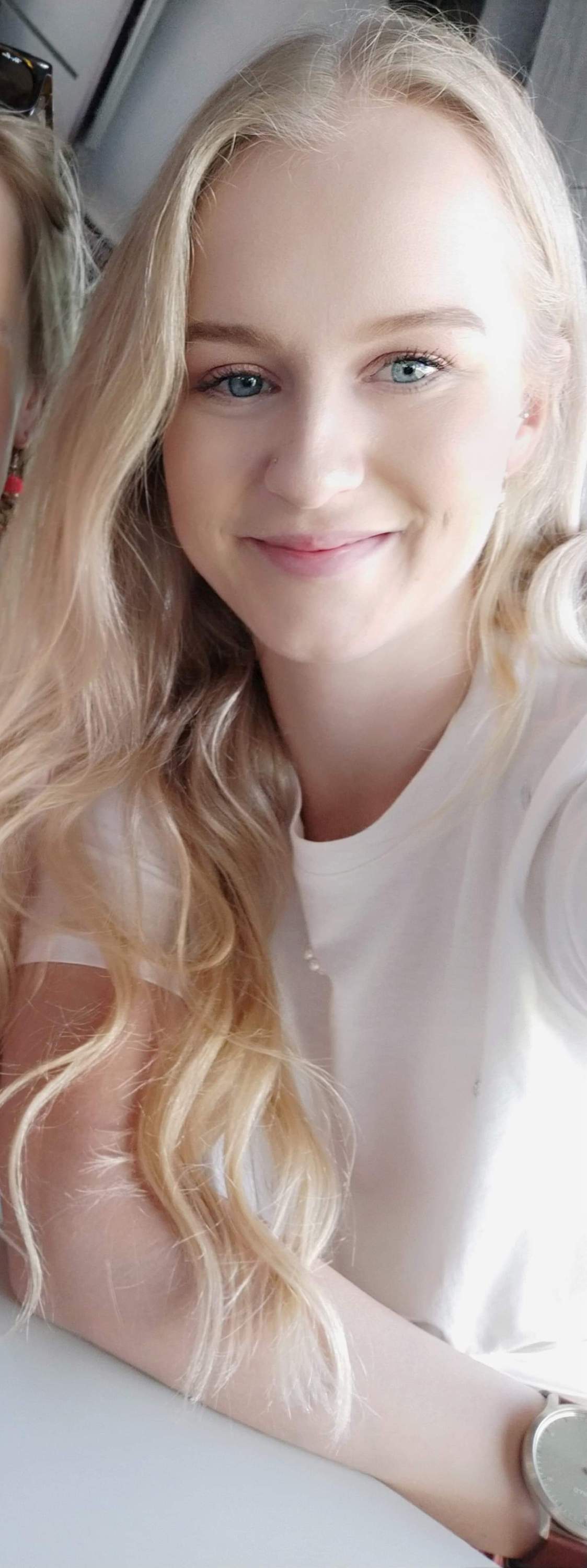 Photo shows A young blonde woman smiling